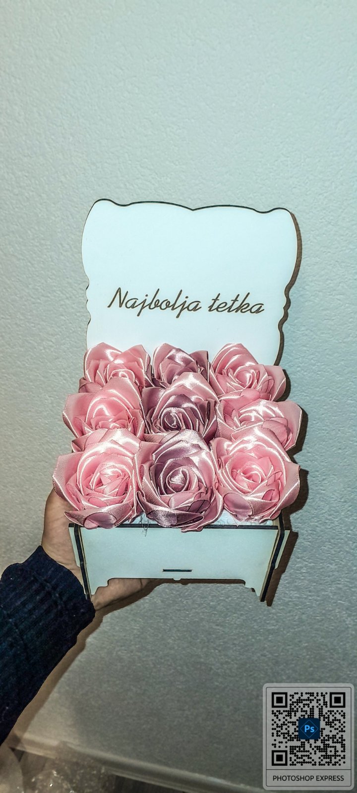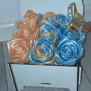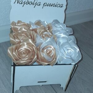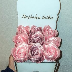Savršen poklon koji traje! Naš aranžman “Buket Zahvalnosti” kombinuje eleganciju ručno rađenih satenskih ruža sa šarmantnim, personalizovanim drvenim sandučićem. Idealan način da izrazite poštovanje i divljenje!